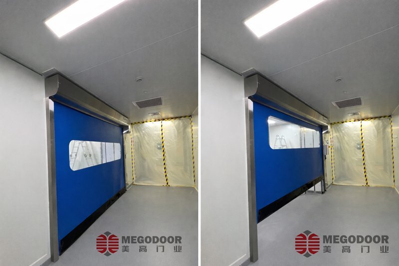 Megodoor cleanroom zipper PVC high speed doors can be configured to hold a pressure difference of 50Pa, which makes them suitable for pharmaceutical workshops, buffer rooms, clean corridors, and other pressure-controlled environments.
