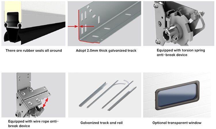 Constructed with 40/50mm thick high-density polyurethane-insulated panels, the doors offer excellent thermal insulation, structural strength, and energy efficiency. Their modern appearance, smooth vertical lifting design, and compact overhead structure make them ideal for warehouses, factories, logistics centers, and commercial facilities.