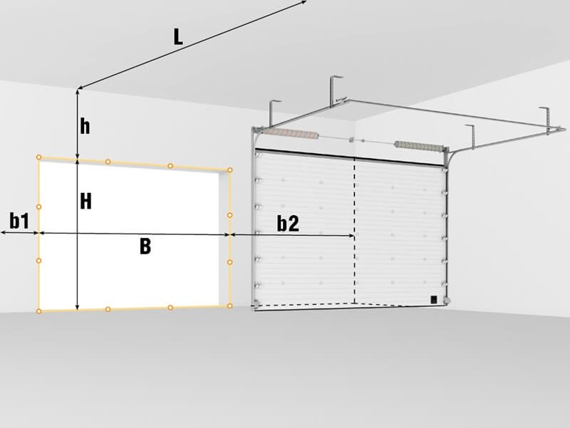 Proper installation space ensures smooth operation and safe installation of the sectional door system.